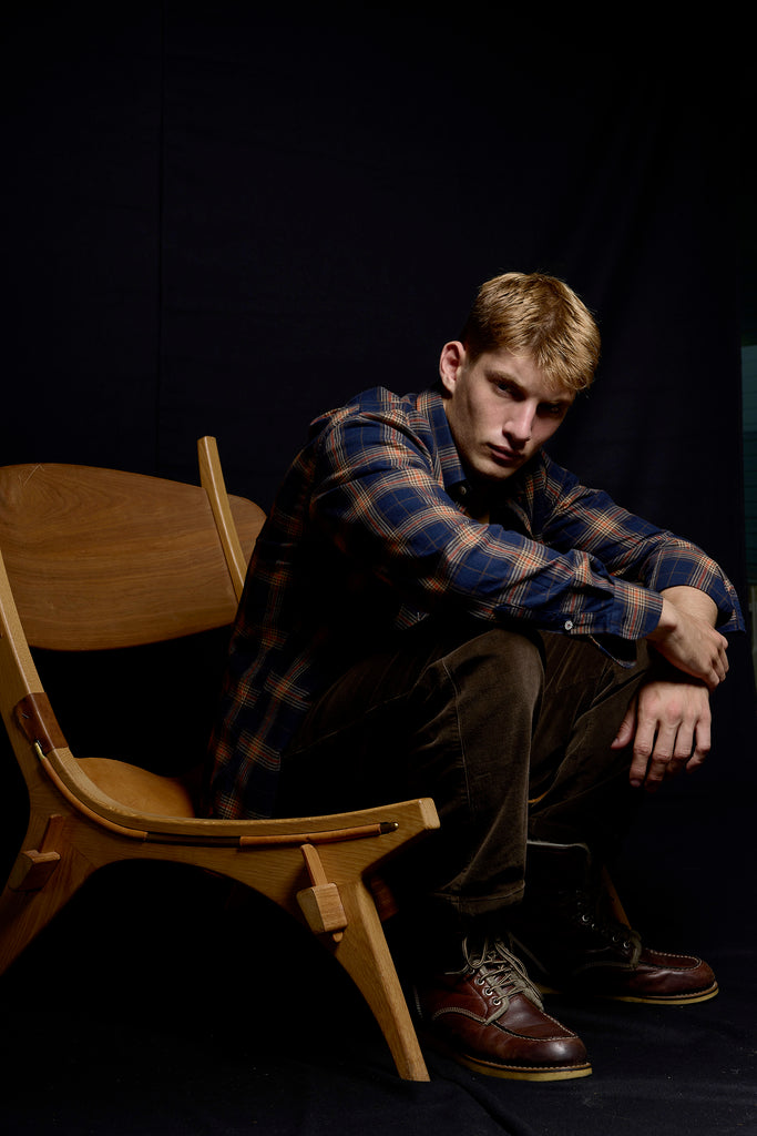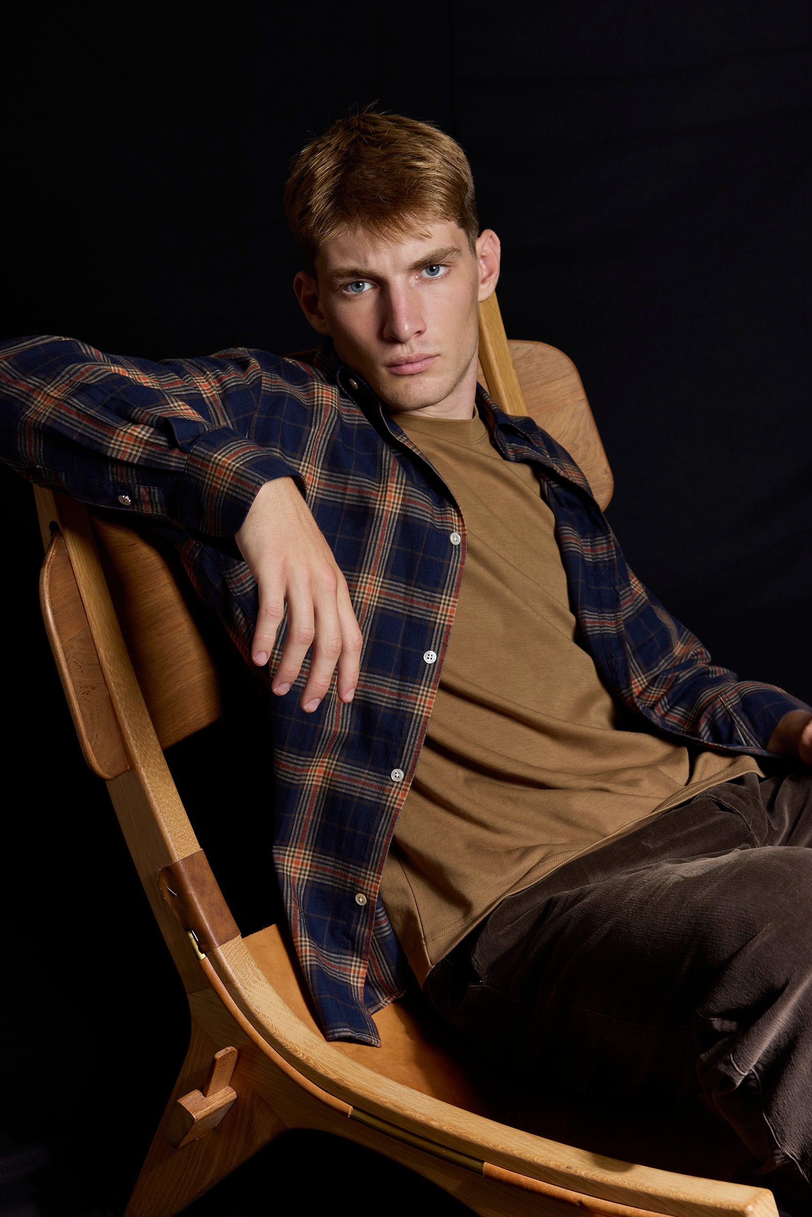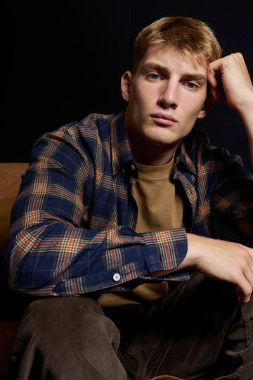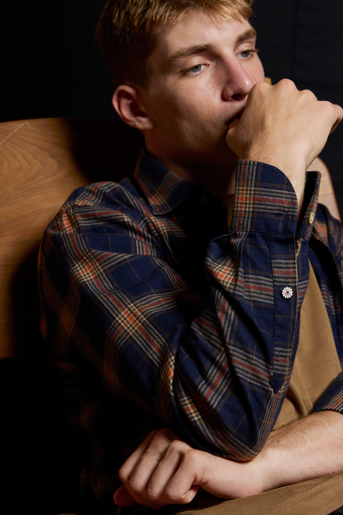 Camisa franela cuadros en marino, beige y teja.